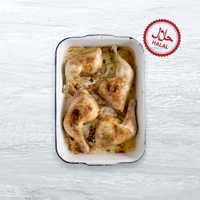 Succulent chicken leg and thigh pieces marinated in authentic Tandoori spices, perfect for grilling, baking, or frying for a flavorful and protein-packed meal.